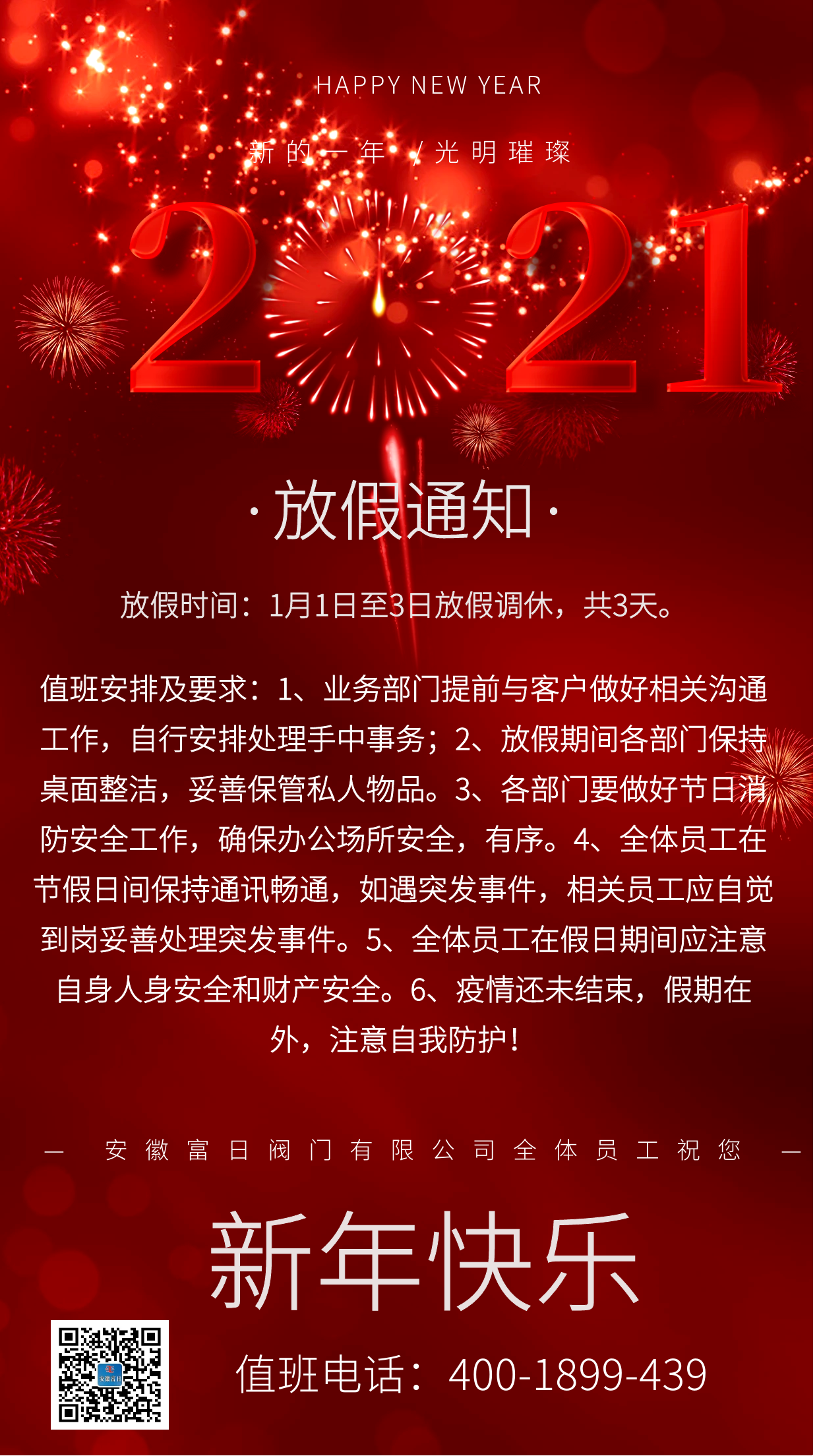 2020實(鼠)不易,砥礪前行;2021(牛)轉乾坤,前程似錦。安徽富日閥門全體同仁祝您:新年快樂,萬事如意。
