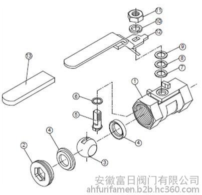 內螺紋一片式球閥主要零件材料: