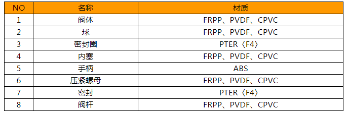 Q41F-10S法蘭塑料球閥零件材質表:
