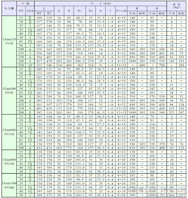 壓力范圍:PN16~160,Class150~900