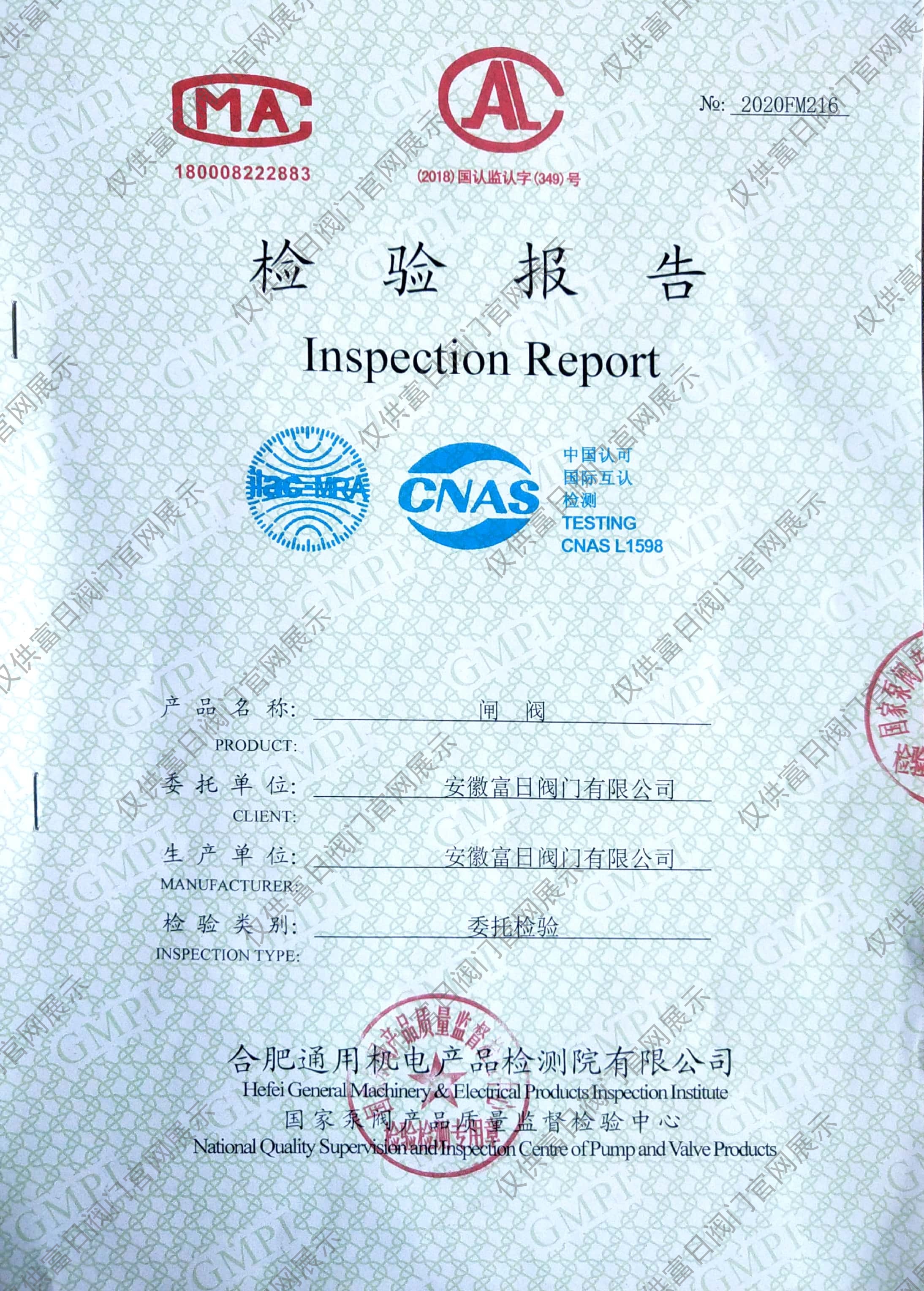 閘閥檢驗報告