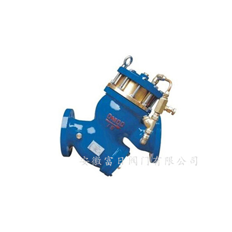 YQ98004型過(guò)濾式緩閉止回閥,是一種利用介質(zhì)自身能量來(lái)調(diào)節(jié)與控制管路壓力的智能型閥門。當(dāng)閥門從進(jìn)口端給水時(shí),水流過(guò)針閥進(jìn)入主閥控制室,出口壓力通過(guò)導(dǎo)管作用到導(dǎo)閥上。當(dāng)出口壓力高于導(dǎo)閥彈簧設(shè)定值時(shí),導(dǎo)閥關(guān)閉。控制室停止排水,此時(shí)主閥控制室內(nèi)壓力升高并關(guān)閉主閥,出口壓力不再升高。當(dāng)閥門出口壓力降到導(dǎo)閥彈簧設(shè)定壓力時(shí),導(dǎo)閥開啟,控制室向下游排水。由于導(dǎo)閥系統(tǒng)排水量大于針閥的進(jìn)水量,主閥控制室壓力下降。進(jìn)口壓力使主閥開啟。在穩(wěn)定狀態(tài)下,控制室進(jìn)水、排水相同,主閥開度不變,出口壓力穩(wěn)定。出口壓力不因進(jìn)口壓力變化而改變,亦不因主閥出口流量的變化而改變,安全可靠地將出口壓力維持在設(shè)定值上。該閥減壓精確,性能穩(wěn)定、安全可靠、安裝調(diào)節(jié)方便,使用壽命長(zhǎng)。可用于生活給水、消防系統(tǒng)及工業(yè)給水系統(tǒng)。