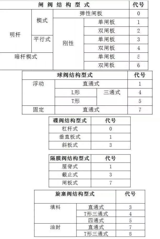 以上分類中可以看出,閥門品種繁多;如此多品類,必須有一個統一的型號編制方法,才能讓購買使用者通過銘牌便能知道某一種閥門結構、特性和材料。