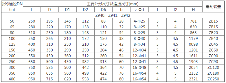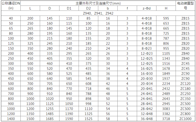 電動法蘭閘閥主要連接及外形尺寸(PN40)